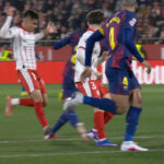 El partido ha terminado con una acción fea por parte de Joel Roca, que ha “cazado” a Lamine cuando encaraba la portería rival. El jugador del Girona se ha ido expulsado a los vestuarios antes de que acabara el partido.