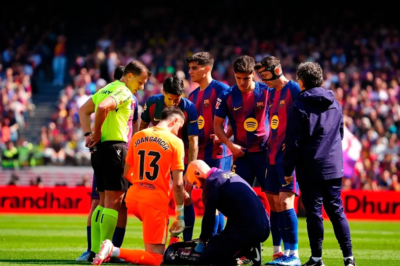Joan Garcia siendo atendido por el cuerpo médico. Fuente: Marca