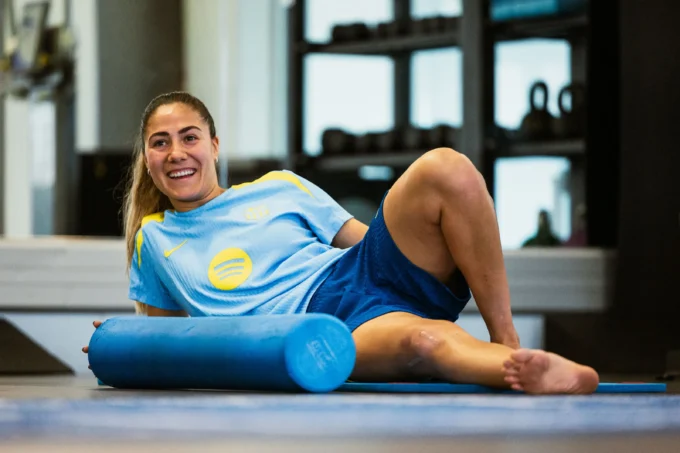 Laia Aleixandri sigue recuperándose tras romperse el ligamento cruzado anterior en el partido de la Copa de la Reina contra el Real Madrid...